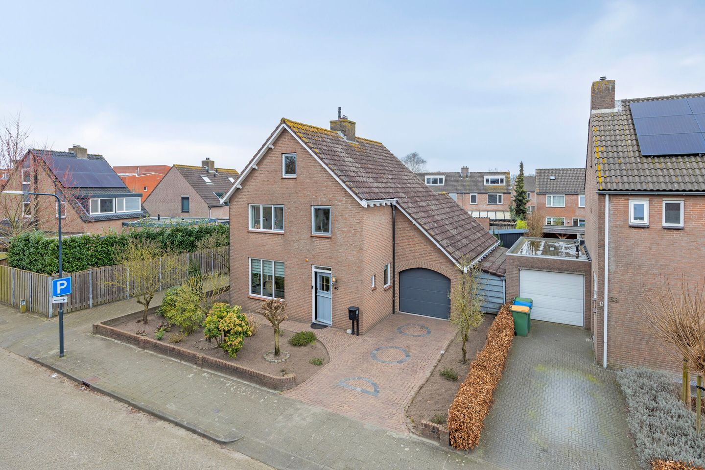 Aan de voorzijde beschik je over een nette voortuin, parkeergelegenheid op eigen terrein en een garage met zolder. De achtertuin is een oase van rust en volop privacy. Met een groot terras, ruim gazon en volwassen groen is dit de ideale plek om te ontspannen of gezellig te tafelen. De tuin heeft een gunstige zonligging en beschikt over een grote vrijstaande berging voor extra opslagruimte.
