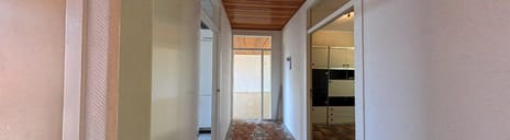 Hal/entree met de meterkast/stookruimte (5 groepen en de CV-combiketel) en toegang tot de woonkamer, keuken, bijkeuken, 2 slaapkamers en de badkamer.
