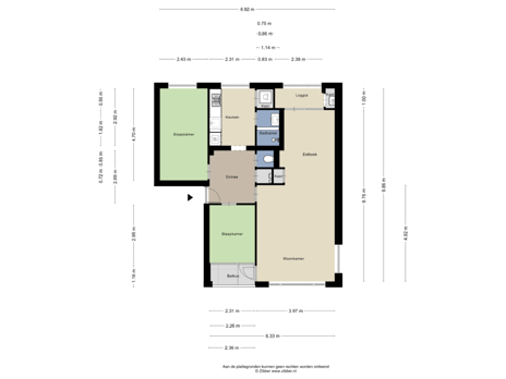 Eenmaal binnen in het appartement valt direct de prettige doorloop op. De hal vormt het centrale punt, is royaal opgezet en geeft toegang tot alle vertrekken. De woonkamer is heerlijk licht, met grote raampartijen die zorgen voor een open gevoel en een fijne verbinding met buiten. Hier is voldoende plek voor een sfeervolle zithoek en een eettafel, waardoor wonen en eten op een natuurlijke manier in elkaar overlopen. Aangrenzend geniet u van een knusse loggia, die eveneens praktisch ingericht zou kunnen worden als werkruimte.