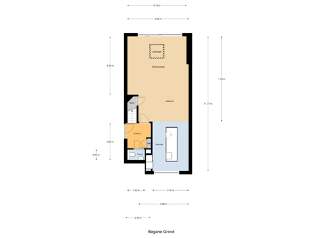 - 96 m² (12,00 meter diep en 8,00 meter breed)