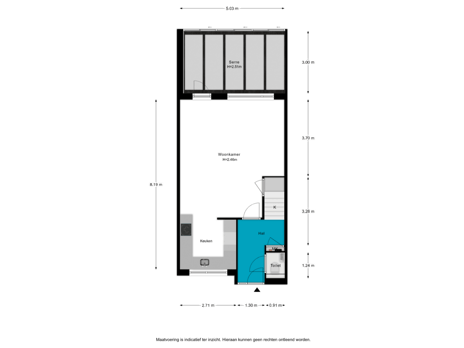 - 42 m² (7,75 meter diep en 5,40 meter breed)