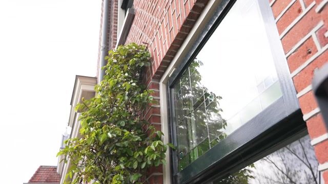 Het eerste gevoel begint al buiten. De gevel is er één waar je naar blijft kijken: authentiek metselwerk met een knipvoeg, sierlijke togen, hoge raampartijen en glas-in-looddetails die samen een warm en uitnodigend geheel vormen. De voortuin, nu stijlvol ingericht met een olijfboom, biedt ook de mogelijkheid om parkeren op eigen terrein te realiseren. Alles klopt hier, tot aan de voordeur die perfect aansluit bij het karakter van het huis.