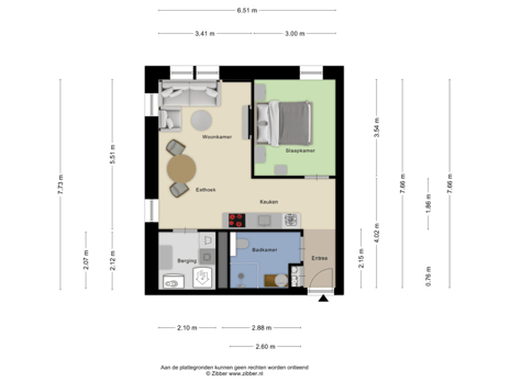 Bij binnenkomst betreed je de hal met video-com en meterkast. Van hieruit heb je toegang tot de badkamer, woonkamer, slaapkamer en inpandige berging/technische ruimte.