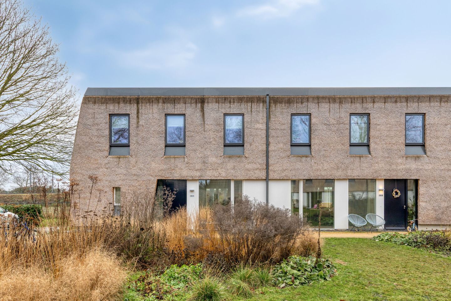 Deze woning is allesbehalve standaard. De unieke buitengevel, afgewerkt met riet, geeft het huis een warme, natuurlijke uitstraling en een karakter dat je zelden tegenkomt. In combinatie met de bijzondere ligging ontstaat hier een woning die direct indruk maakt — ingetogen, maar uitgesproken.