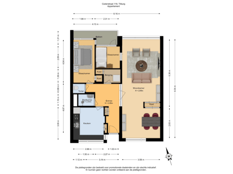 Ruim driekamerappartement met balkon, twee fijne slaapkamers, eigen berging en een keuken met inbouwapparatuur. De Cederstraat ligt in de fijne en groene woonwijk 'De Reit' en bevindt zich op loop- fietsafstand van het centrum. Daarnaast is het appartement gelegen op loopafstand van het Spoorpark, op fietsafstand van Tilburg University en het Centraal Station Tilburg.