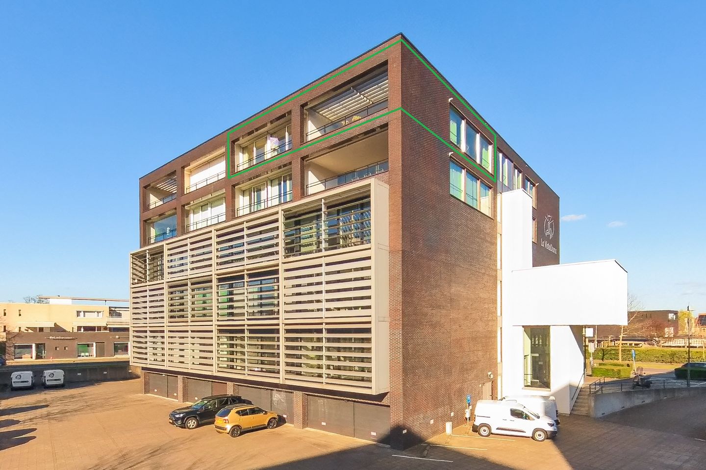 In het gebouw La VistaDuna zijn 4 lagen kantoren gerealiseerd, met daarboven 2 lagen appartementen. Per woonlaag zijn er 4 appartementen, waarbij elke woning op een hoek is gelegen en naar twee zijden uitzicht heeft.