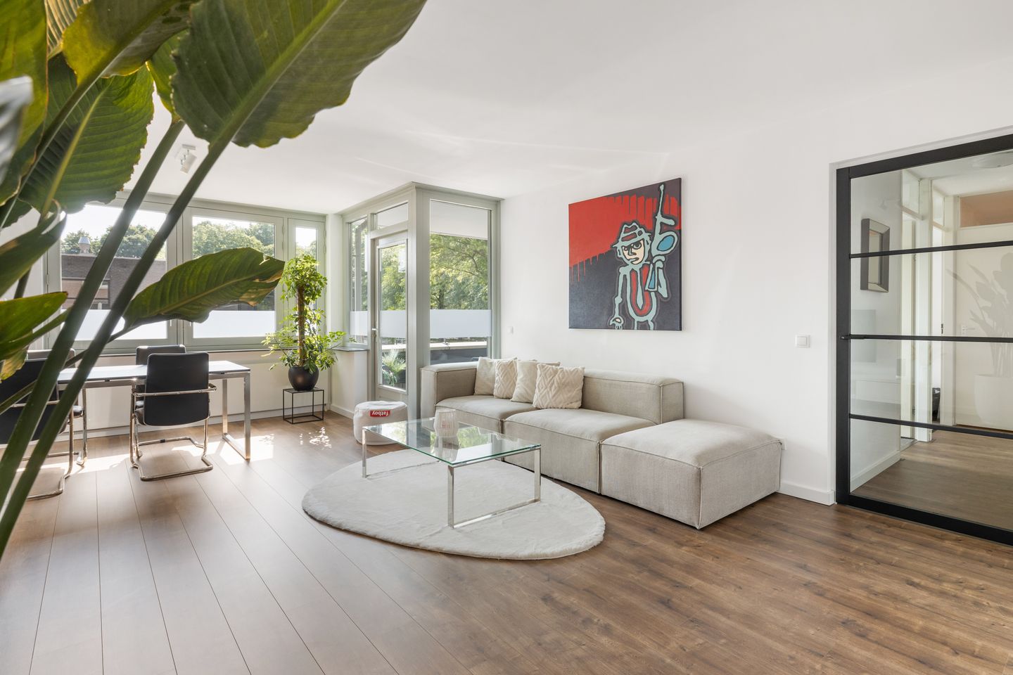 De woonkamer is ruim en licht, met toegang tot het zonnige balkon op het oosten: perfect voor je ochtendkoffie of om nog even na te genieten van de dag.