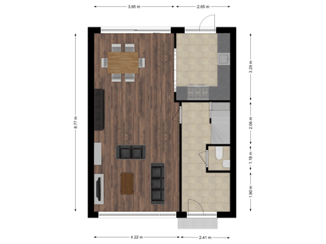 - 100 m² (14,67 meter diep en 6,81 meter breed)