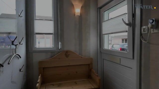 Portaal met een moderne toiletruimte (2018/ 2019) voorzien van een vrij hangend toilet en een fontein met meubel. Hier bevindt zich tevens de trapopgang naar de eerste verdieping.