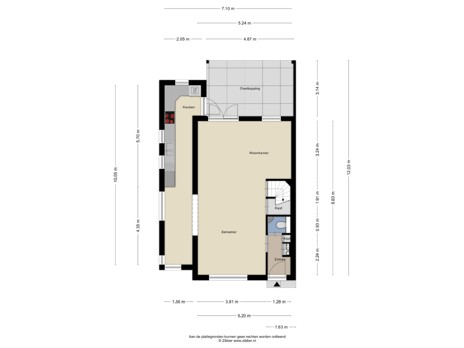 - 110 m² (13,00 meter diep en 7,50 meter breed)