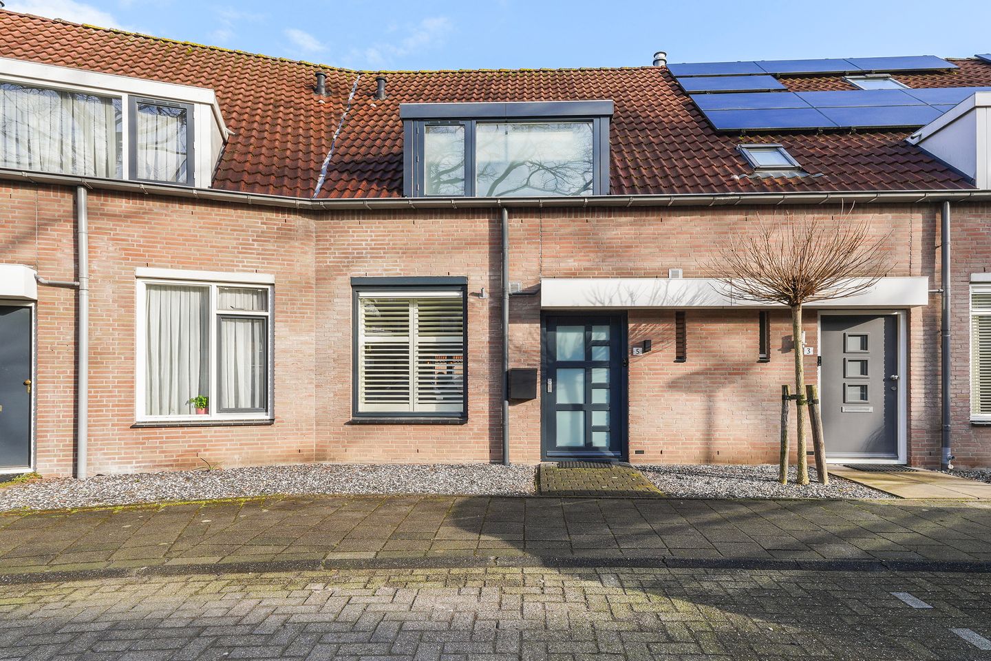 De kozijnen aan de voorzijde zijn voorzien van nieuw schilderwerk