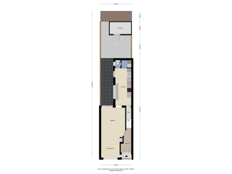 - 40 m² (9,00 meter diep en 4,40 meter breed)