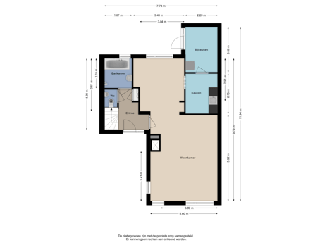 - 94 m² (10,00 meter diep en 9,40 meter breed)