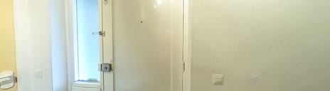 De badkamer is voorzien van een ligbad, een douchehoek en een vaste wastafel met spiegelkast. Op de vloer liggen een soort anti slip tegeltjes en de wanden zijn voor het grootste deel betegeld met spuitwerk erboven.