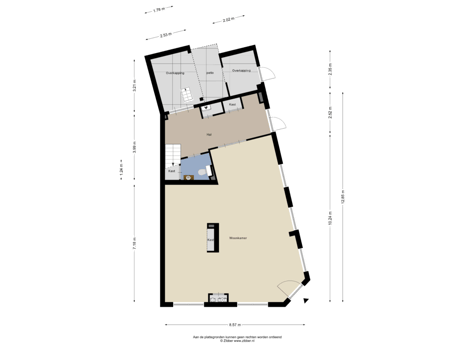 - 13 m² (4,00 meter diep en 3,30 meter breed)