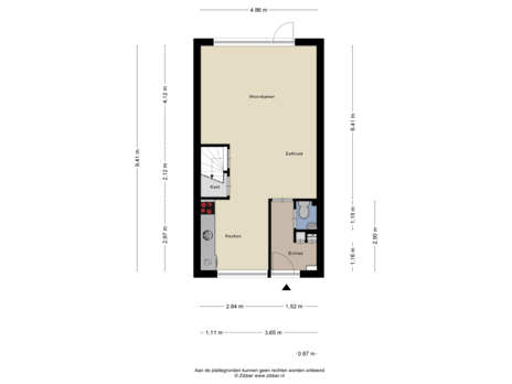- 70 m² (13,50 meter diep en 5,15 meter breed)