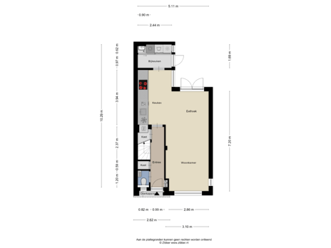 - 28 m² (5,50 meter diep en 5,00 meter breed)