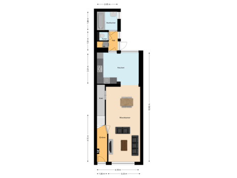 - 23 m² (7,75 meter diep en 4,30 meter breed)