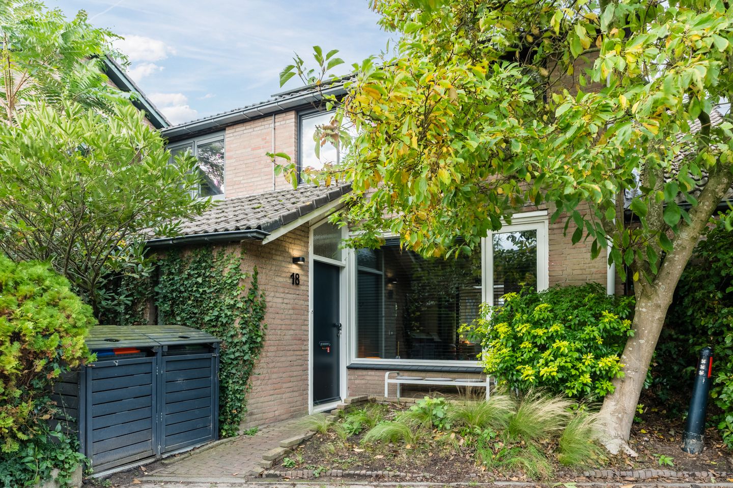 Via de entree kom je in de ruime hal met toegang tot de moderne toiletruimte met fonteintje. Vanuit de hal bereik je via een stijlvolle industriële deur de lichte woonkamer, voorzien van een warme houten vloer die doorloopt in de rest van de begane grond. De grote schuifpui zorgt voor veel lichtinval en direct contact met de tuin.