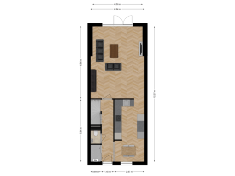 De begane grond is afgewerkt met stucwerk wanden en plafonds en een pvc vloer met vloerverwarming.