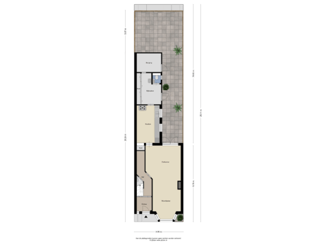 - 61 m² (16,00 meter diep en 3,80 meter breed)