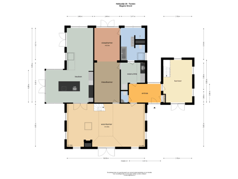 Grenzend aan de centrale hal en perfect gepositioneerd ten opzichte van woonkeuken en slaapgedeelte ligt de ruime bijkeuken: een praktische ruimte voor was- en droogmachine. Deze combinatie van luxe en doordachte voorzieningen op de begane grond maakt het woongeluk zowel comfortabel als toekomstbestendig.