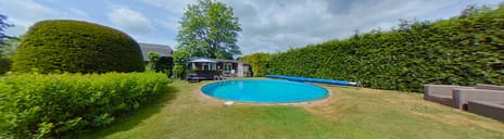 Het vrijstaande gastenverblijf biedt een knusse studio met badkamer, toilet, eigen cv-installatie en een zonnig terras aan het zwembad. Dit gastenverblijf leent zich ook uitstekend voor mantelzorg of logies. Het ronde zwembad wordt verwarmd door een warmtepomp en zonnecollectoren. U geniet hier van volop privacy met uitzicht op fraai aangelegde borders.