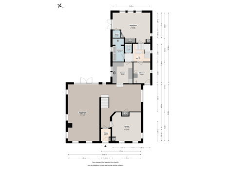 Vanuit de keuken bereikt u de achterhal met badkamer (v.v. douche en dubbele wastafel), de slaapkamer in het achterhuis met sauna alsmede de bijkeuken/zijentree.