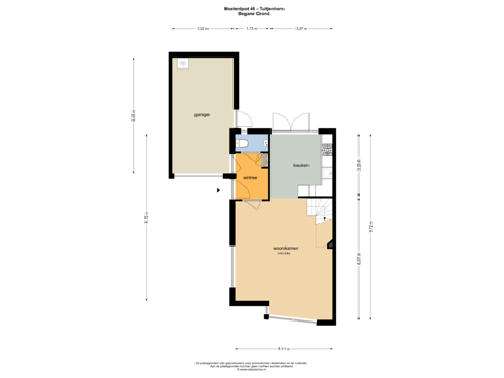 Via de entree aan de zijkant van het woonhuis komt u in de hal, met toegang tot het toilet, de garage en de living. Verder treft u hier de meterkast en garderoberuimte. De toiletruimte is deels betegeld en beschikt over een hangcloset met fontein.
