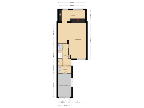 - 62 m² (9,95 meter diep en 6,20 meter breed)