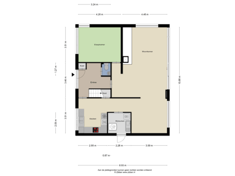 Bij binnenkomst in de woning word je verwelkomd in de hal, waar zich ook een toilet bevindt. Vanuit de hal loop je door naar de woonkamer. Deze royale, lichte ruimte is het hart van het huis. Dankzij de grote schuifpui stroomt het daglicht rijkelijk naar binnen. Op zomerse dagen schuif je de pui helemaal open en heb je direct toegang tot de ruime tuin. Hier kun je de hele dag genieten van de zon en de rust in de groene omgeving.