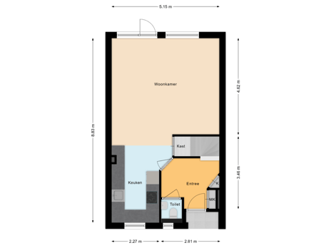 - 40 m² (8,00 meter diep en 5,00 meter breed)