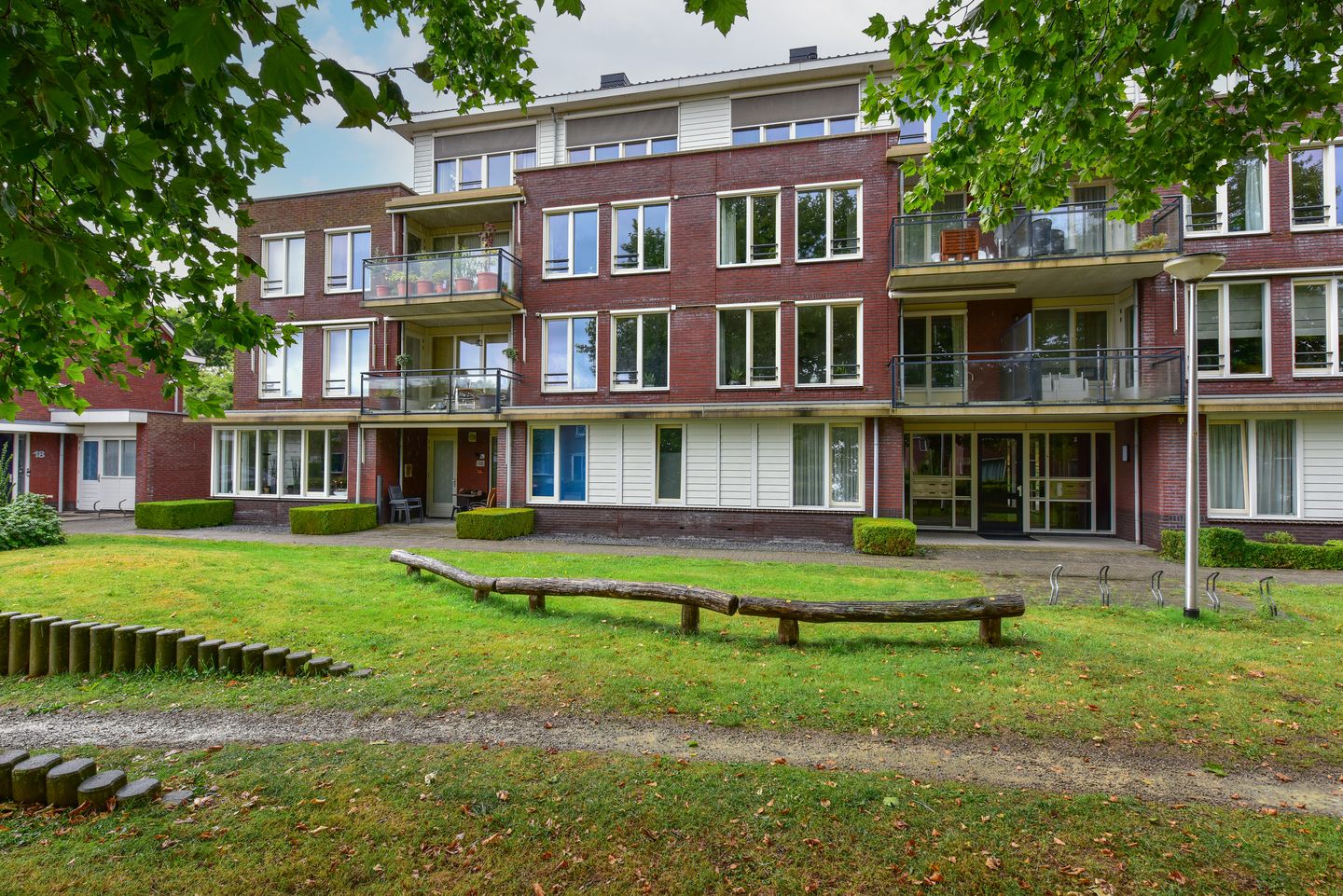 • Een balkon met zicht op het groen voor het complex