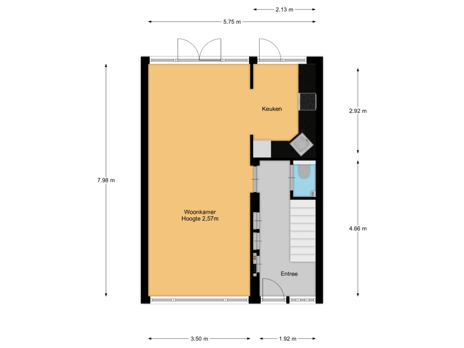 Op basis van de NEN 2580 norm moet dit minimaal 0.5 m² zijn. Officieel is deze ruimte 'Overig inpandige ruimte'.