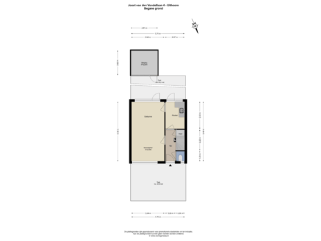 Via de voortuin bereikt u de entree van de woning. De hal, voorzien van de meterkast en het toilet, biedt toegang tot de zonnige woonkamer. De keuken is aan de tuinzijde gesitueerd en biedt eveneens toegang tot de achtertuin.
