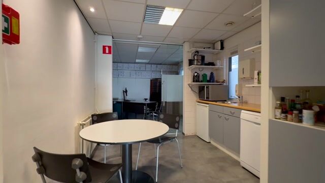 De begane grond beschikt over een royale kantoorruimte annex winkelruimte met een plafondhoogte van circa 2,74 meter en een diepte van ongeveer 12 meter. De ruimte is momenteel in gebruik als één grote open kantoorruimte. Aan de achterzijde bevinden zich een stookruimte, een toilet met portaal en daglichttoetreding, en een ruime voorraadruimte. Daarachter ligt de keuken en vervolgens een separate spreekkamer met een eigen toegang vanaf de buitenzijde.