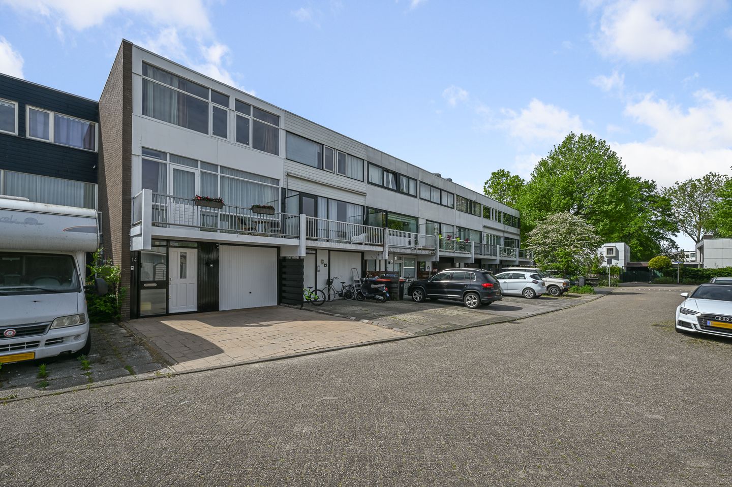 Verzorgde voortuin waar u 2 auto's kwijt kunt en met overdekt entree, zonnige achtertuin op het W (met trap vanuit De woonkamer (2019)), twee balkons waarvan 1 op Oost en 1 op West
