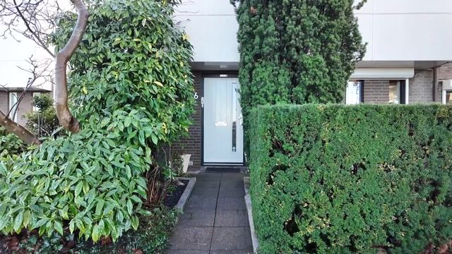 Als u voor de woning staat, dan heeft u geen idee dat er niet alleen voor maar ook achter de woning een flinke tuin ligt. Het ontwerp van de L-vormige achtertuin is goed doordacht met terrassen aan twee zijdes van de woning en veel groenblijvende struiken. Je hoeft op een zonnige dag dus niet lang te zoeken om een plekje in de zon of in de schaduw te vinden. De tuin biedt bovendien voldoende privacy om samen van te genieten. In de lente verandert de tuin in een bloemenzee.