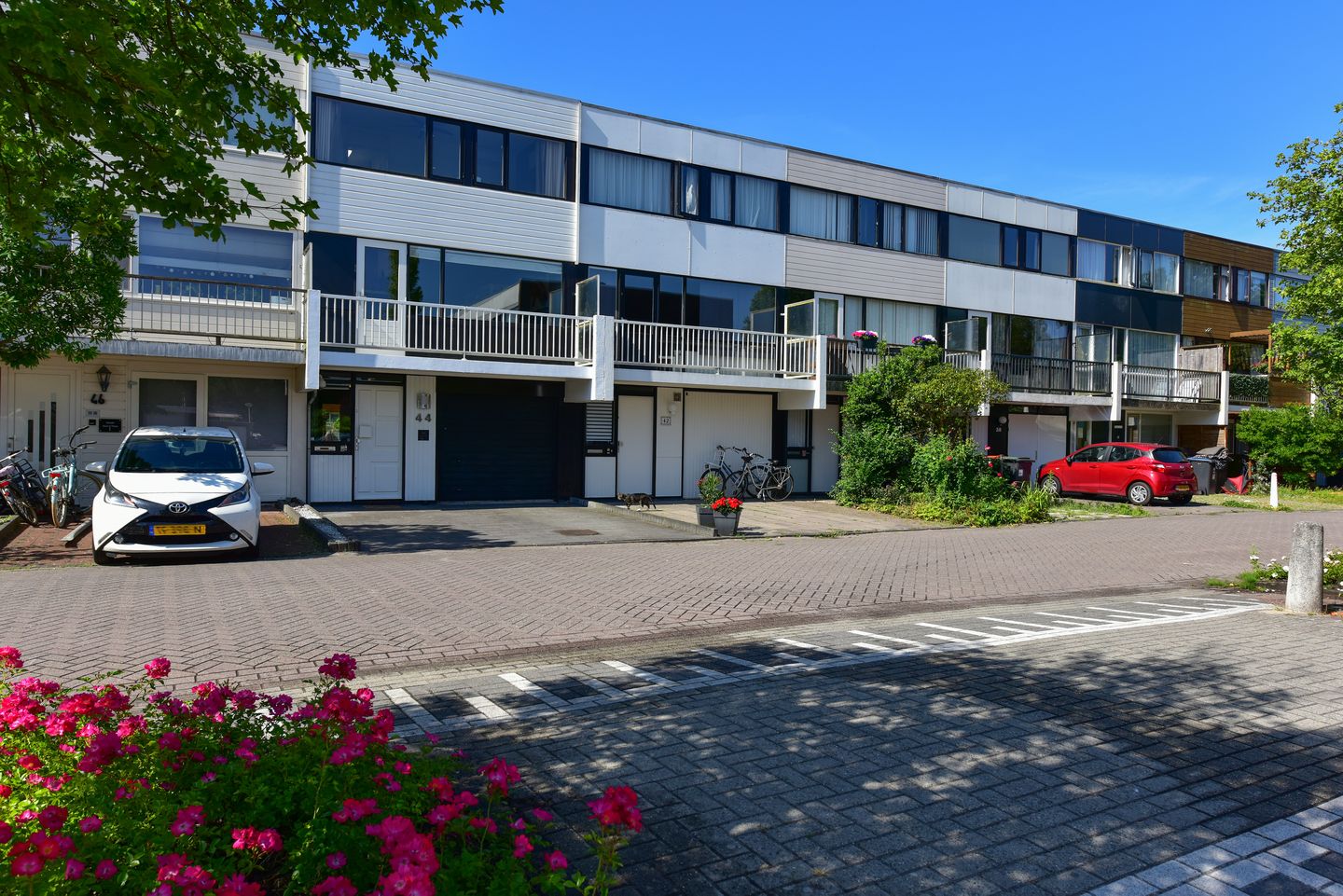 De voortuin biedt parkeergelegenheid op eigen terrein voor maximaal twee auto’s en geeft toegang tot de garage, die is voorzien van een elektrische sectionaaldeur.