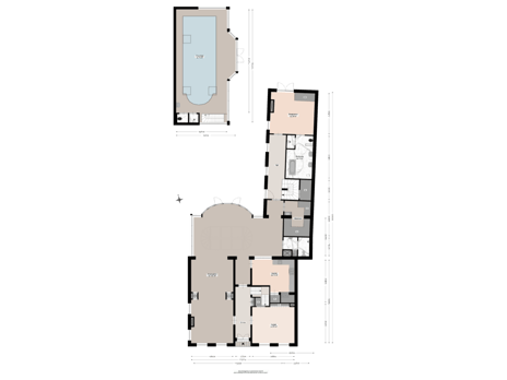 Overdekt zwembad: zwembad van ca. 4x10 meter; toilet; douchegelegenheid; openslaande tuindeuren.