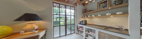 Wandelen langs de vijvers en lanen in je eigen park en even bijkomen met een kopje koffie bij de imposante schouw in de woonkeuken. Wonen in hofstede De Heulhoeve betekent genieten van de ultieme vrijheid die dit schitterende landgoed biedt. Het leven stroomt hier binnen en buiten. U deelt dit landgoed met een diversiteit aan vogels, zoals de fazant en de Vlaamse gaai. Daarnaast bezoeken hazen en soms ook reeën de meer dan royale parktuin. De monumentale hoeve, stammend uit 1750, functioneerde tot midden jaren 60 nog als boerderij. Toen kocht de heer Homburg, een Amsterdamse antiquair, De Heulhoeve. Hij verbouwde het pand met allerlei antieke elementen, zoals beelden, houtsnijwerk en deuren uit Frankrijk en Spanje, tot woonboerderij. Het unieke, robuuste karakter dat de antiquair creëerde, ademt nog altijd door de hofstede. De sfeer van het goede leven is tot in elke vezel voelbaar in de bijzondere living waar de hoge schouw en zichtbare gebinten voor gezelligheid zorgen. In de woonkeuken scheppen de grote raampartijen met roedeverdeling en het balkenplafond geborgenheid. Hier tafelt u urenlang met familie en vrienden om vervolgens een laatste drankje te nuttigen bij de imposante schouw. En wat dacht u van een afsluitende wandeling in uw eigen parktuin. Tuinarchitect Arend Jan van der Horst borduurde voort op het terrasontwerp van Mien Ruys en ontwierp een verrassend park met meerdere waterpartijen waaronder een grote, natuurlijke vijver met een steiger. Hier geniet u samen van de opkomende of ondergaande zon.