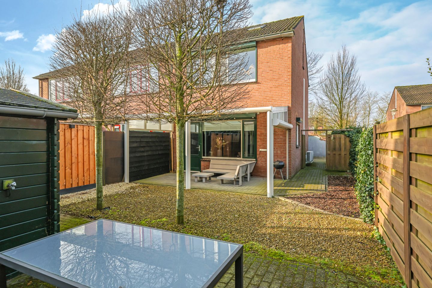 De achtertuin is volledig omsloten, biedt veel privacy en heeft een fijne veranda die met een rolluik aan één zijde afsluitbaar is, zodat je heerlijk beschut kunt zitten. Verder staat er een tuinhuisje voor extra opslag en zijn de schuttingen vorig jaar grotendeels vernieuwd. De woning heeft een brede omloop, wat extra ruimte rondom de woning biedt. Aan de voorzijde van de woning staat een vergrote stenen schuur, voorzien van een elektrisch kacheltje en een uitstortgootsteen.
