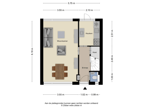 - 63 m² (12,50 meter diep en 5,00 meter breed)