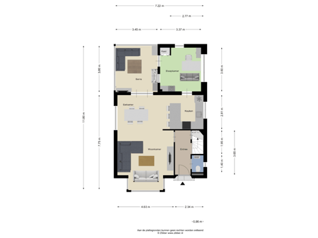 Daarna kom je in de woonkamer terecht, waar je verrast wordt door het licht en de open sfeer. De grote raampartijen zorgen voor een fijne lichtinval en de doorlopende laminaatvloer maakt het tot een strak geheel. Er is ruimte genoeg voor een comfortabele zithoek en een royale eettafel, die naadloos overloopt in de open keuken.