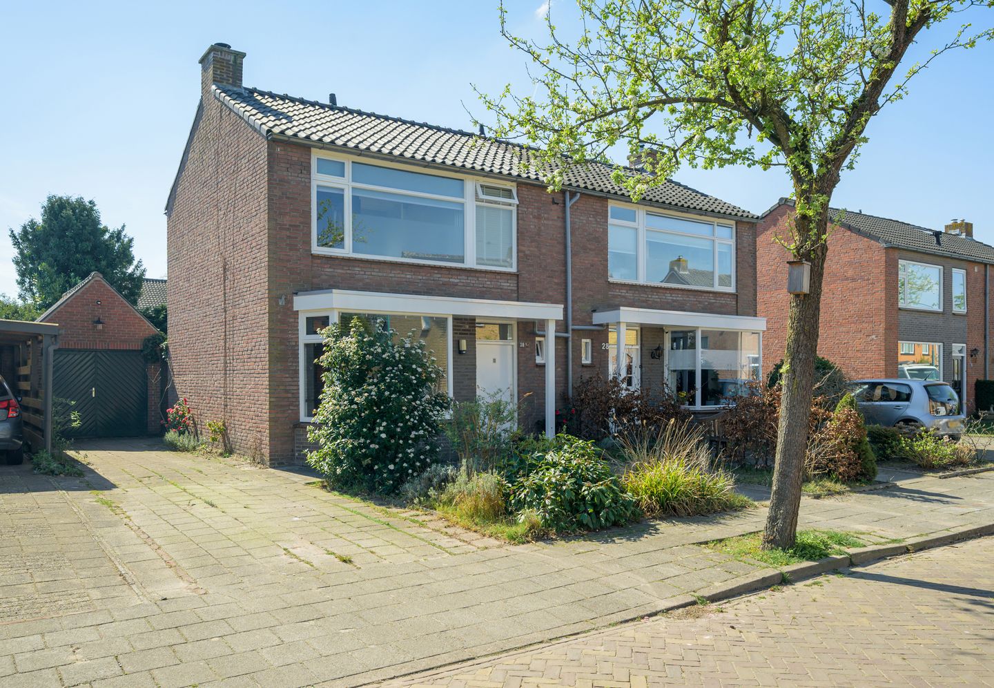Middels aangelegde tuin en oprit toegang tot de entree van de woning.