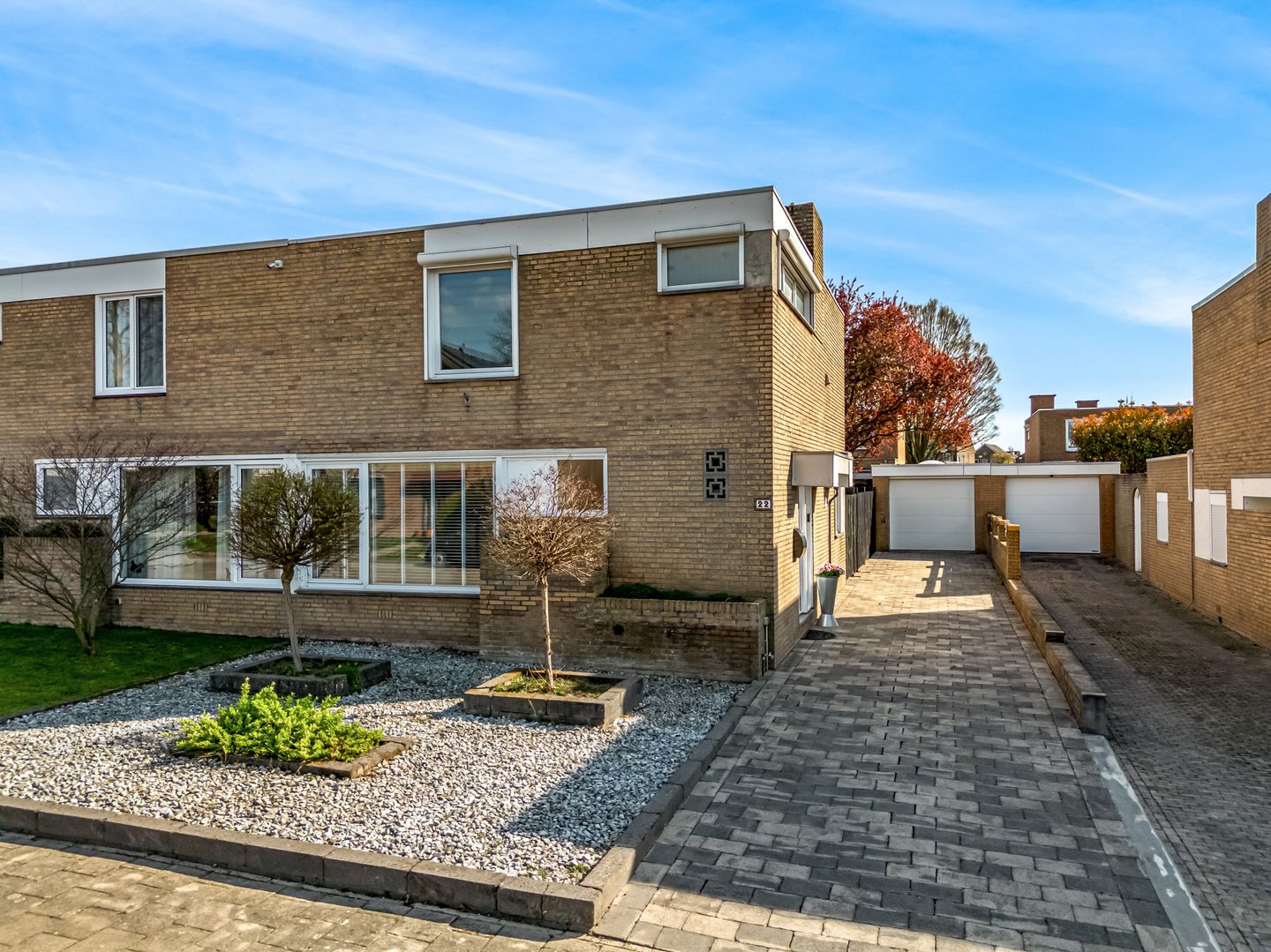 - Twee-onder-een kapwoning met garage, overdekt terras, grote oprit en keurig aangelegde tuin in rustige woonomgeving;