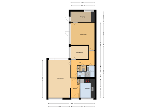 - 31 m² (8,50 meter diep en 3,60 meter breed)