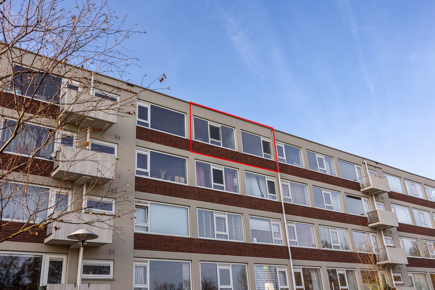 Het appartement ligt op de vierde (en bovenste) verdieping, dus je woont hier lekker rustig met een fijn vrij uitzicht. Via de hal kom je in de fijne open keuken, de WC en de ruime, lichte woonkamer.