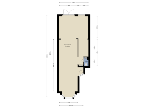 - 38 m² (7,60 meter diep en 5,00 meter breed)