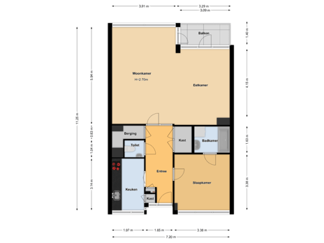 De vermelde gebruiksoppervlakte is vastgesteld volgens de NEN2580-meetinstructie. Hoewel deze methode uniformiteit beoogt, kunnen interpretatieverschillen, afrondingen of praktische beperkingen bij het uitvoeren van de meting tot afwijkingen leiden. De aangegeven maten dienen als indicatie.